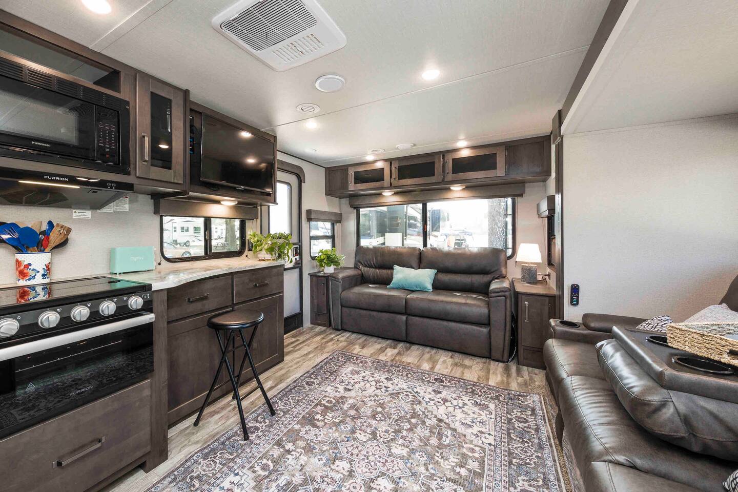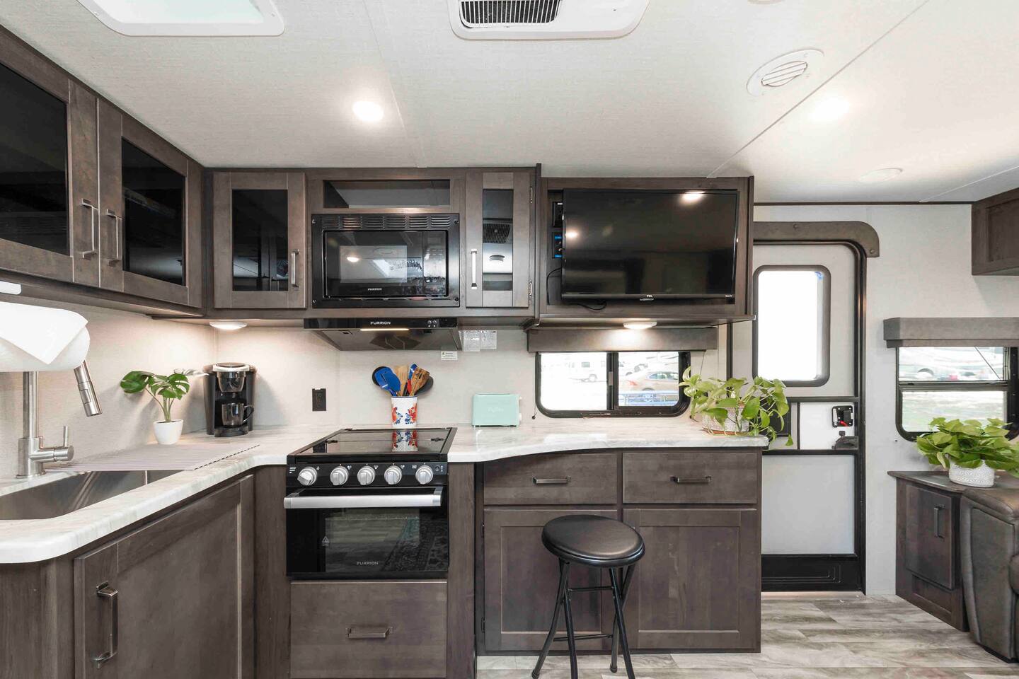 This is a self-catering property, but we do provide the basics to get you started - coffee, sugar, salt and pepper, toilet paper, soap, shampoo/conditioner, and basic cleaning supplies. If you require additional items or quantities of those provided you will need to provide those. There is a Walmart and grocery store less than 2 miles away. There is a shared neighborhood pool (Pool Hours - 9AM-9PM), horseshoe, and social area available for your use. There is also an onsite Laundry room and Gym available for all guests of the park. We will provide you with the full address of the RV park one day prior to your arrival. The RV Park will provide your site location at check in. Many property details can be found in the listing online or in the App.