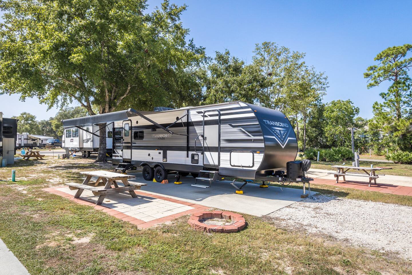 Gulf Glamper, is a 2022 Grand Design camper nestled in the heart of Gulf Shores currently located at Island Retreat RV Park. The park is located along the scenic bicycle trail. This cozy retreat offers you the perfect blend of comfort and adventure. Located just a 10-minute bike ride away from the vibrant center of Gulf Shores and a 15-minute pedal to the sun-soaked beaches.